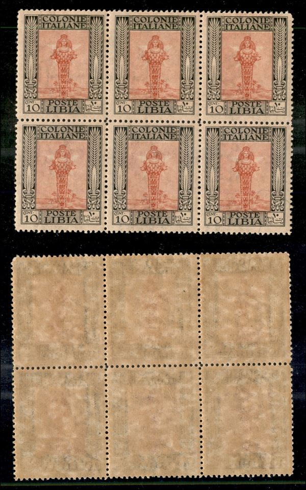 1921 - 10 cent Pittorica (24) - blocco orizzontale di 6 - gomma integra