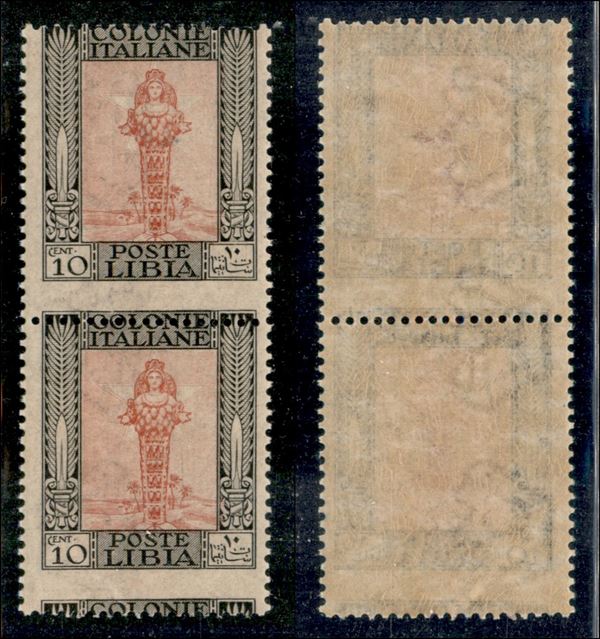 1921 - 10 cent Pittorica (24 - varietà) - coppia verticale di formati diversi - Colonie a cavallo al centro (ripetuto nel pezzo inferiore) - gomma integra - non catalogato