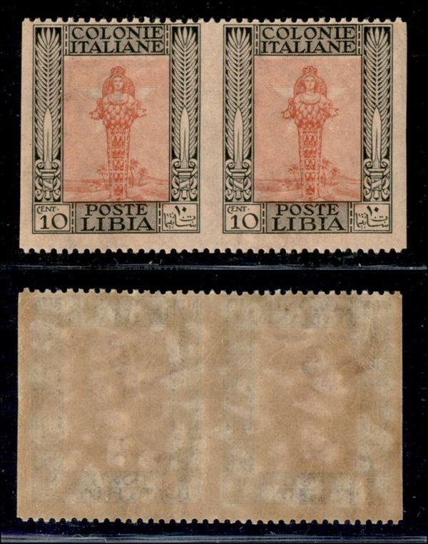 1921 - 10 cent Pittorica (24m) - coppia orizzontale non dentellata in verticale - gomma integra