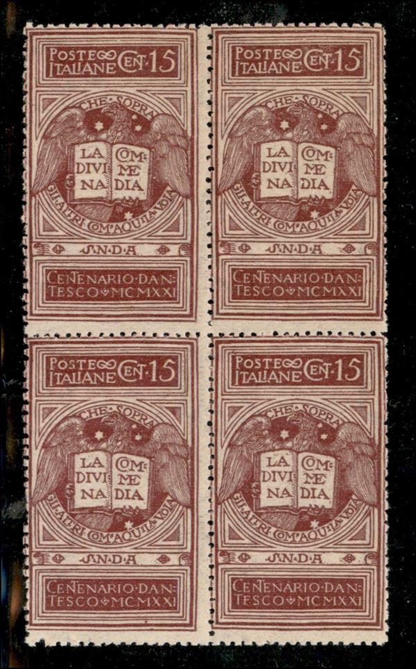 1921 - 15 cent Dante Alighieri (116) - in quartina - gomma integra (90)