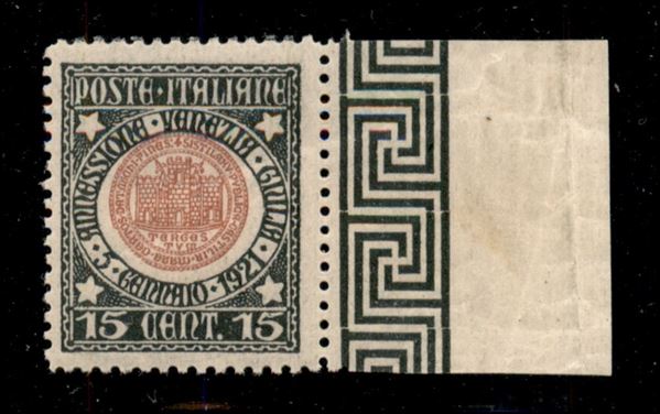 1921 - 15 cent Venezia Giulia (113i) con decalco - bordo di foglio - gomma integra (225)