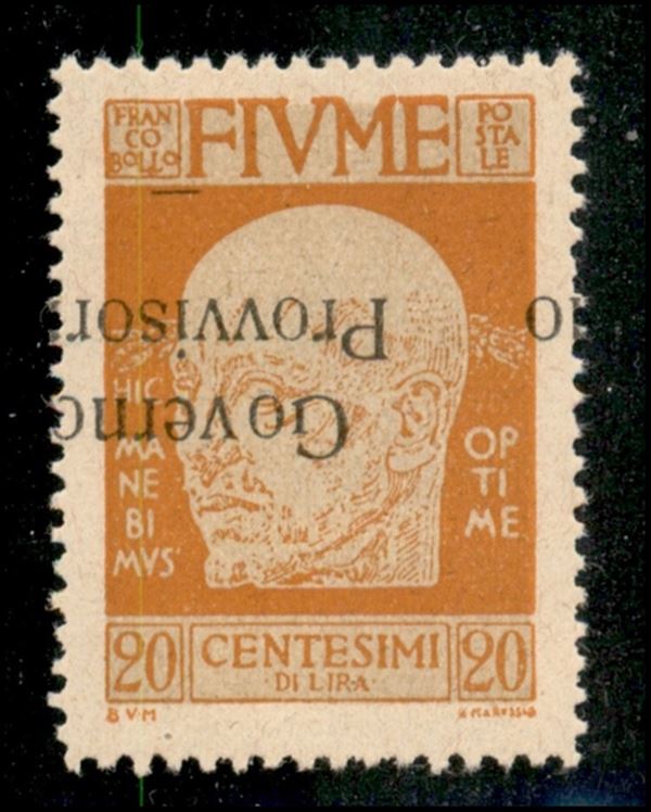 1921 - 20 cent (152ac varietà) con soprastampa capovolta molto spostata (i a cavallo) - gomma integra