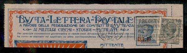 1921 - 25 cent (3) + complementare (108) su testatina di busta - Roma 11.11.21