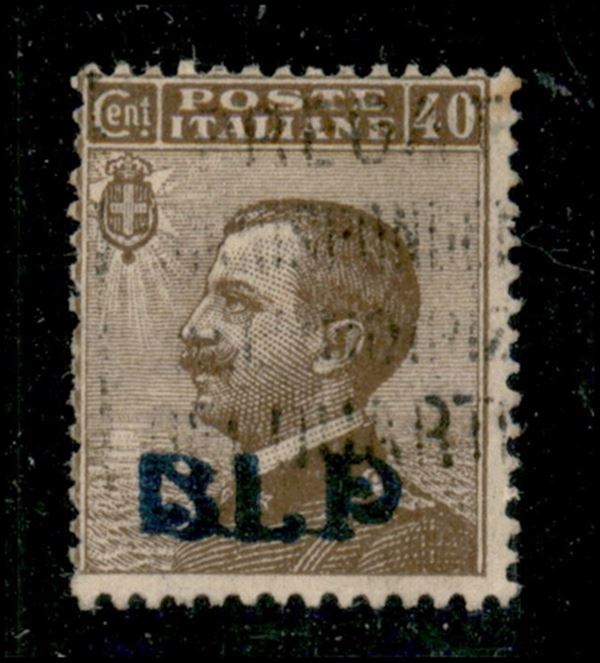 1921 - 40 cent (4Am - azzurro nera) usato - senza punto dopo P - Oliva (220)