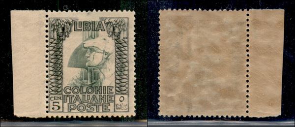 1921 - 5 cent Pittorica (23y) bordo foglio con filigrana croce a sinistra (a cavallo) - gomma integra
