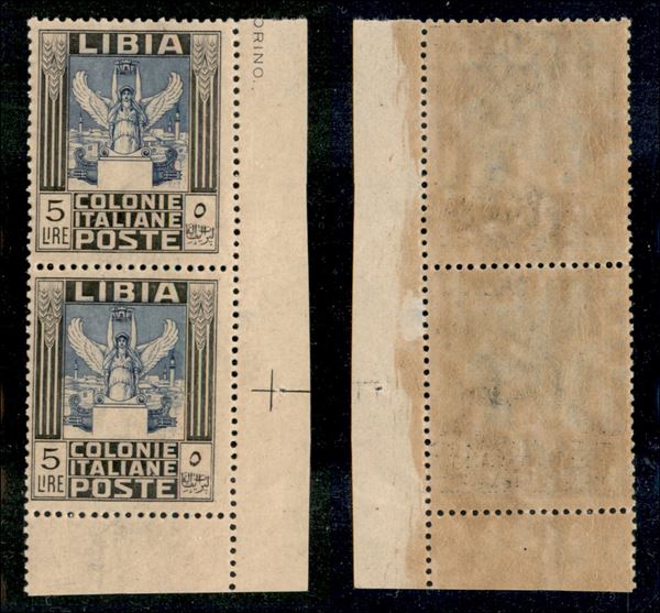 1921 - 5 lire Pittorica (31) - coppia angolare - gomma integra
