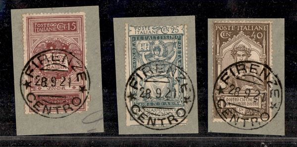 1921 - Dante Alighieri (116/118) - serie completa usata su frammenti a Firenze nel primo giorno d'emissione (28.9.21)