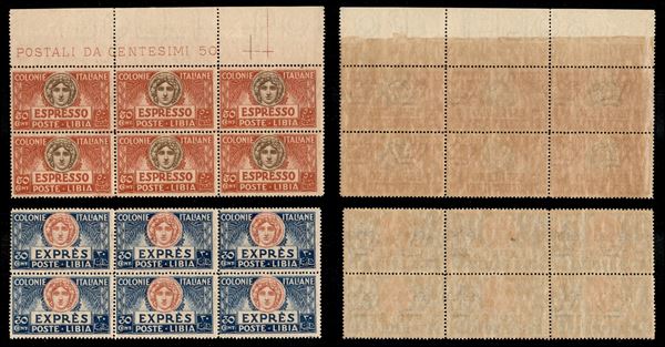 1921 - Espressi (3/4 + 3l/4l) - serie completa in blocchi orizzontali di 6 - coppie centrali con una sola corona in filigrana (200+)