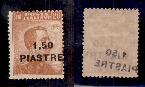 1922 - 1,50 piastre su 20 cent (49dab varietà) con soprastampa a destra + decalco spostato/obliquo al retro - gomma originale