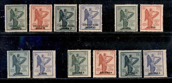 1922 - Vittoria - Emissione completa (Eritrea 50/53 + Libia 34/37 + Somalia 30/33) - gomma integra