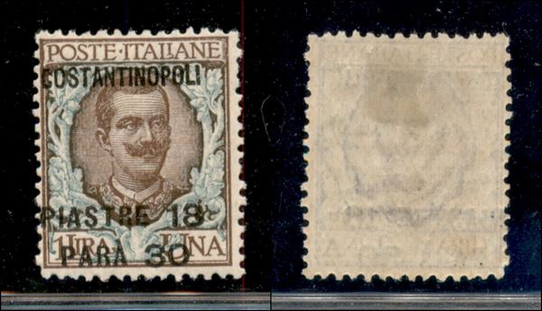1923 - 18,30 piastre su 1 lira (82dac varietà) con soprastampe a sinistra - gomma originale - non catalogato