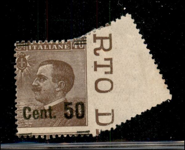 1923 - 50 cent su 40 (139w varietà) - formato anomalo per piega del foglio - gomma originale - non catalogato