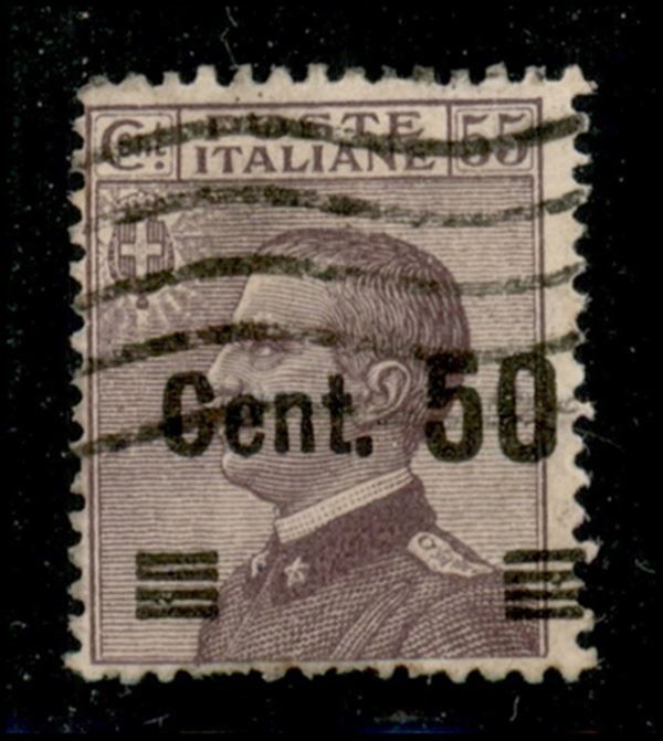 1923 - 50 cent su 55 Michetti (140qan) con sbarrette in basso - non quotato usato - dentellatura inferiore carente