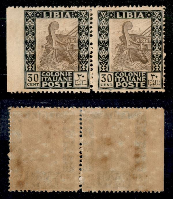 1924 - 30 cent Pittorica (50s/50) - coppia orizzontale con non dentellato a sinistra bordo foglio - gomma integra (bruna)