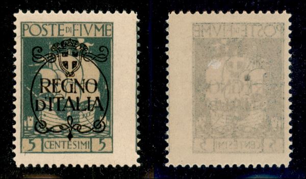1924 - 5 cent Regno d'Italia (202 - varietà nab) con dentellatura destra spostata - gomma integra - piccola falla di gomma - non catalogato