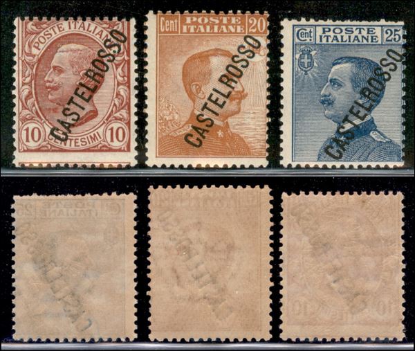 1924 - Soprastampati (16+18+19 varietà) - insieme di tre valori con soprastampe spostate - gomma integra