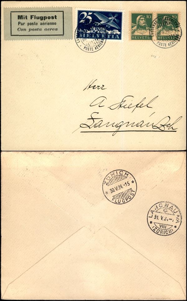 1924 (29 maggio) - Losanna Blecherette - aerogramma per Langnau