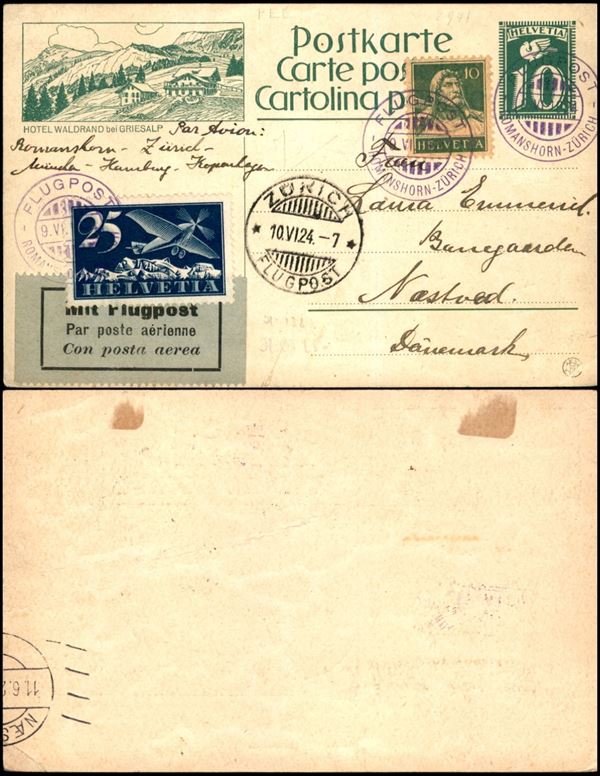 1924 (9 giugno) - Romanshorn Zurich - aerogramma per Nastved