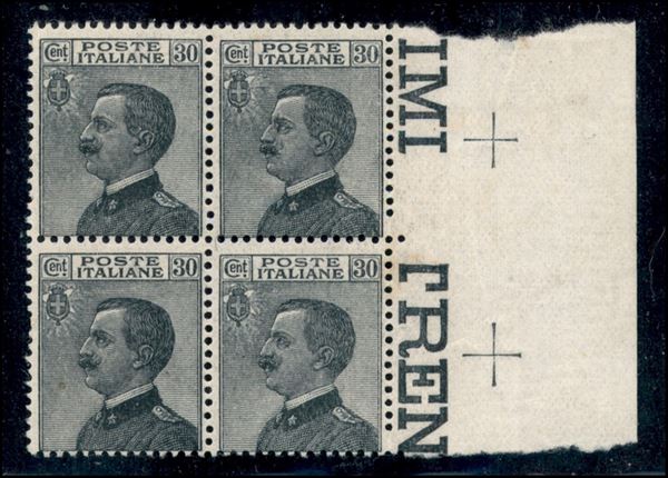 1925 – 30 cent Michetti (185g) – quartina bordo foglio con decalco – gomma integra (180+)