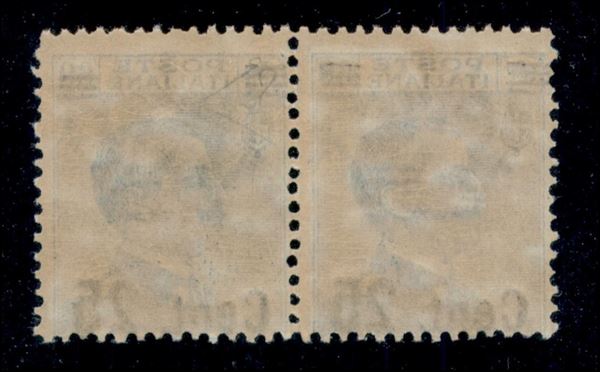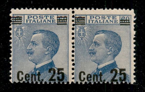 1925 - 25 cent su 60 (179 + 179m) - coppia orizzontale (3 sbarrette a destra) - gomma integra