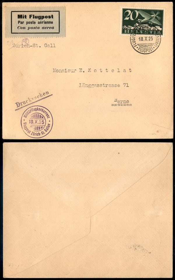 1925 (18 ottobre) - Militarflug Zurigo St. Gallen - aerogramma per Berna
