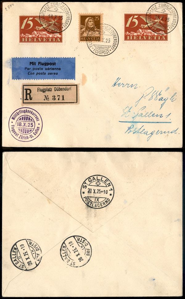 1925 (18 ottobre) - Militarflug Zurigo St. Gallen - aerogramma raccomandato