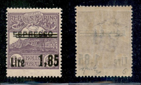 1926 - 1,85 lire su 60 cent (129a) con doppia soprastampa Espresso - gomma integra - cert. Chiavarello (900)
