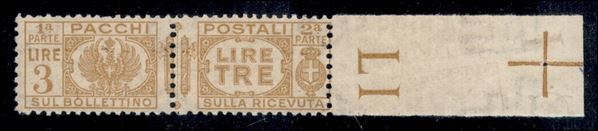 1927 - 3 lire (32c) bordo foglio - stampa recto verso - gomma integra