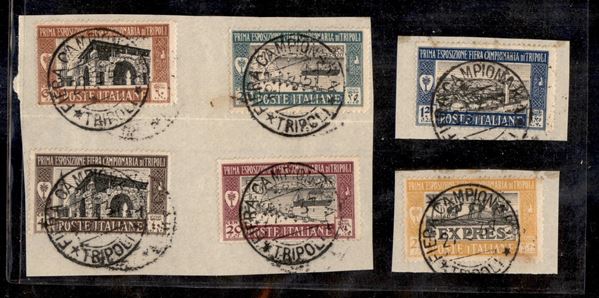 1927 - Prima Fiera - 6 valori (66/69 + 71 + 15 Espressi) usati su frammento (208+)
