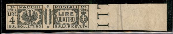 1927 - Prova di Macchina - 4 lire (33) bordo foglio - sempre senza gomma - Diena