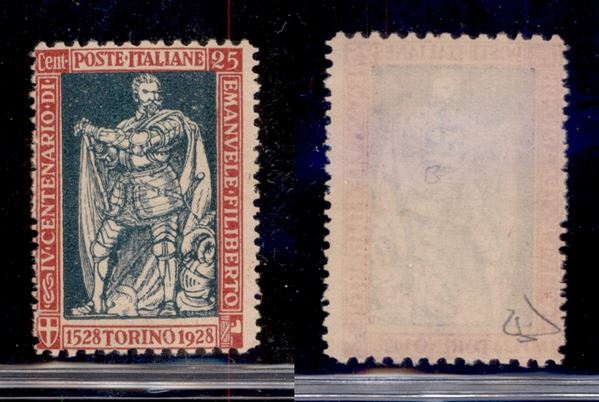 1928 - 25 cent Filiberto (227b) - dentellato 11x13 1/2 - senza gomma - Diena (900)