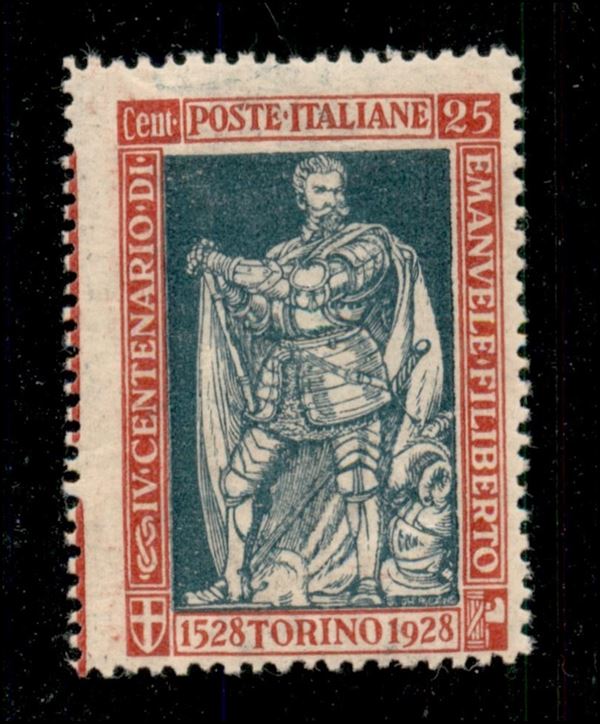 1928 - 25 cent Filiberto (231 - varietà) - dentellatura verticale sinistra spostata (sulle diciture marginali) - gomma integra - non catalogato