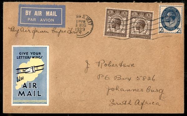 1929 (8 agosto) - aerogramma per il Sud Africa