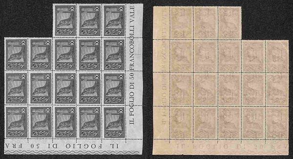 1932 - 10 lire Pittorica (64) - blocco angolare di 18 - gomma integra