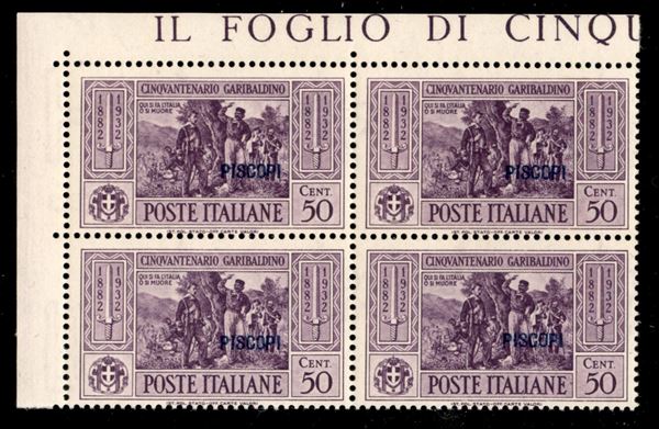 1932 - 50 cent Garibaldi (2i) - quartina angolare - gomma integra