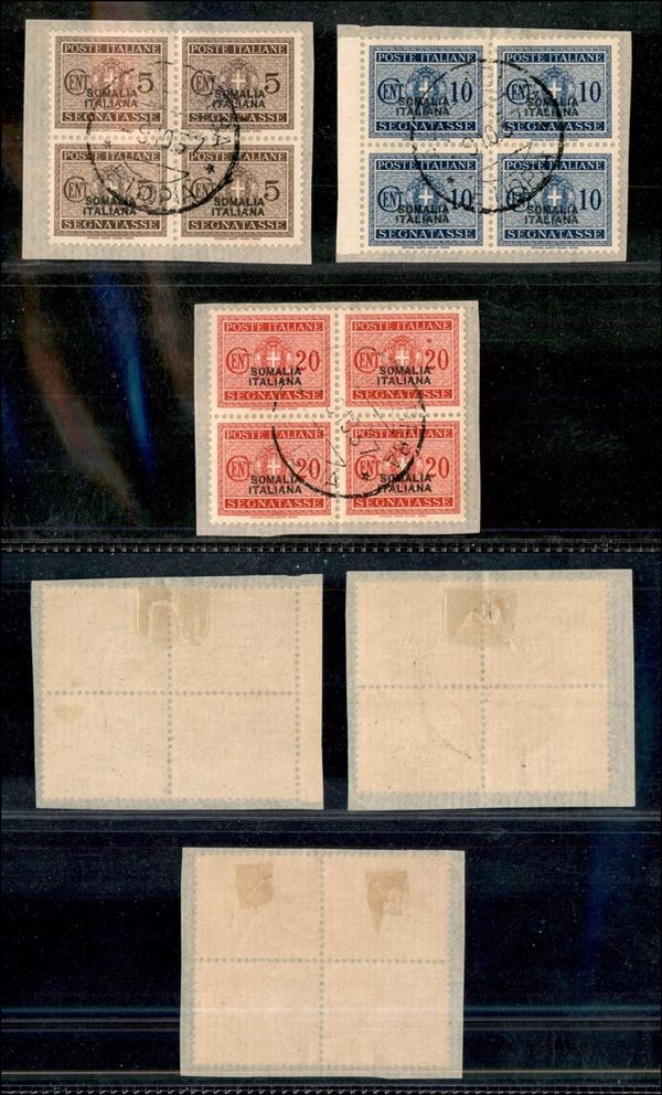 1934 - Segnatasse (52/54) - insieme di 3 valori in quartina usati a Addis Abeba (9.10.37) su frammento