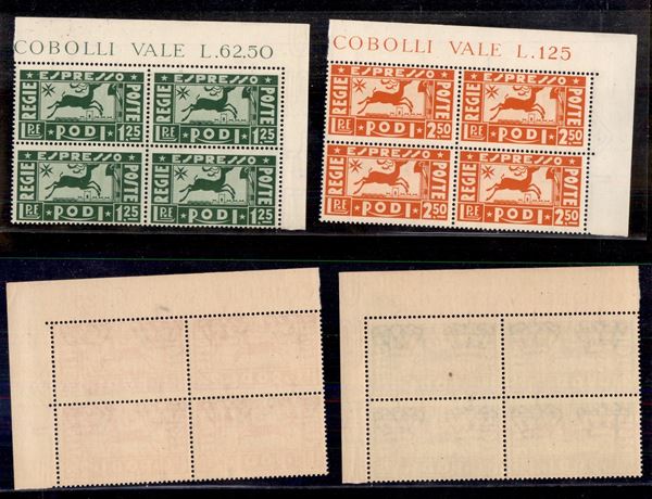 1936 - Espressi (1/2) - serie completa in quartine angolo di foglio - gomma integra