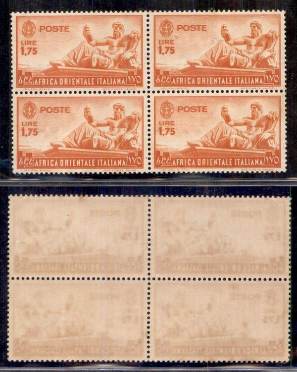 1938 - 1,75 lire Soggetti vari (14) in quartina - gomma integra
