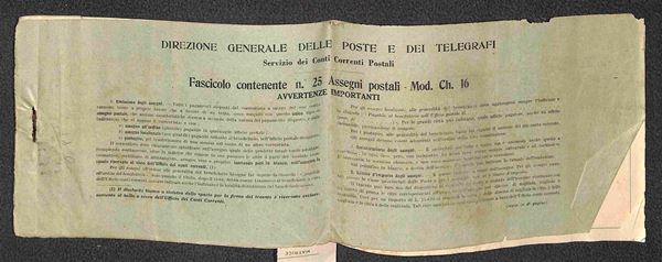 1940 - Poste e Telegrafi - Assegni Postali Mod. Ch. 16 - fascicolo con 13 Assegni integri
