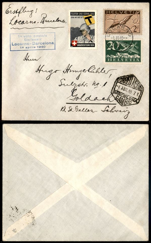 1940 (1 aprile) - Locarno Barcellona - aerogramma per Goldach