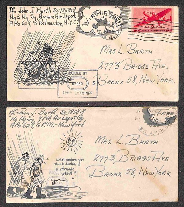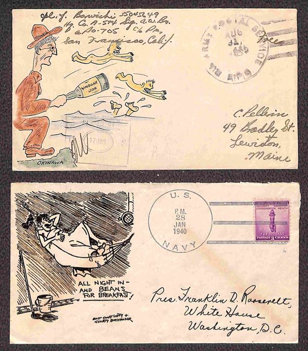 1940/1945 - Quattro buste illustrate a mano (una a colori) usate