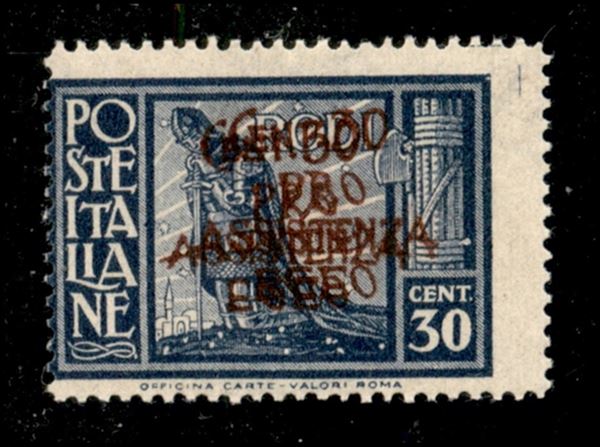 1943 - 30 cent Pro Assistenza (122b) con doppia soprastampa - gomma originale con invisibile traccia di linguella