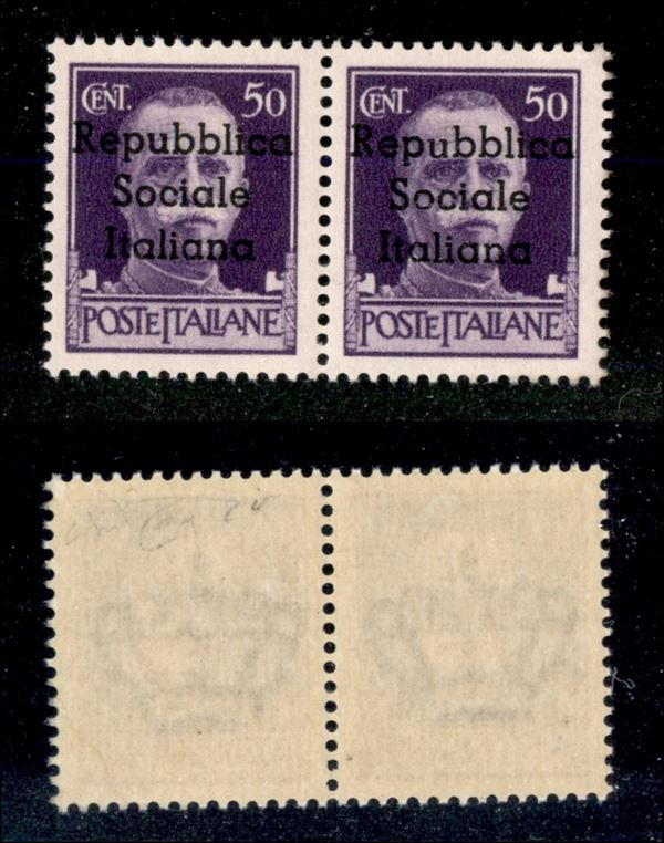 1944 – 50 cent (6 + 6 l) – coppia con u piccolo a destra – gomma integra (100+)