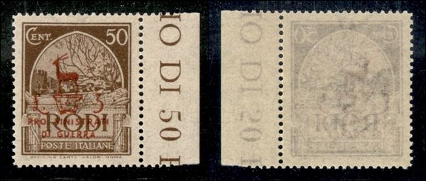 1944 - 50 cent + 3 lire Sinistrati (130 varietà) con soprastampa in basso - gomma integra