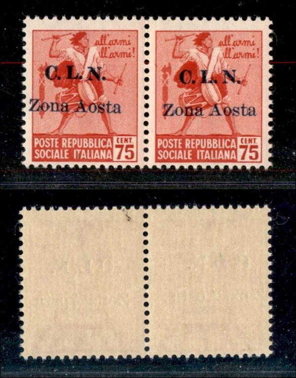 1944 - 75 cent (3 varietà + 3) - coppia orizzontale con soprastampe disallineate e con soprastampa spostata a sinistra nel primo pezzo - gomma integra - non catalogato