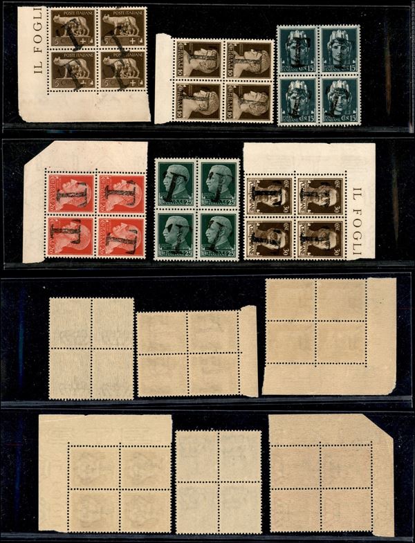 1944 - Segnatasse - T a mano - Imperiale (243+245/249) - 6 valori in quartine - gomma integra