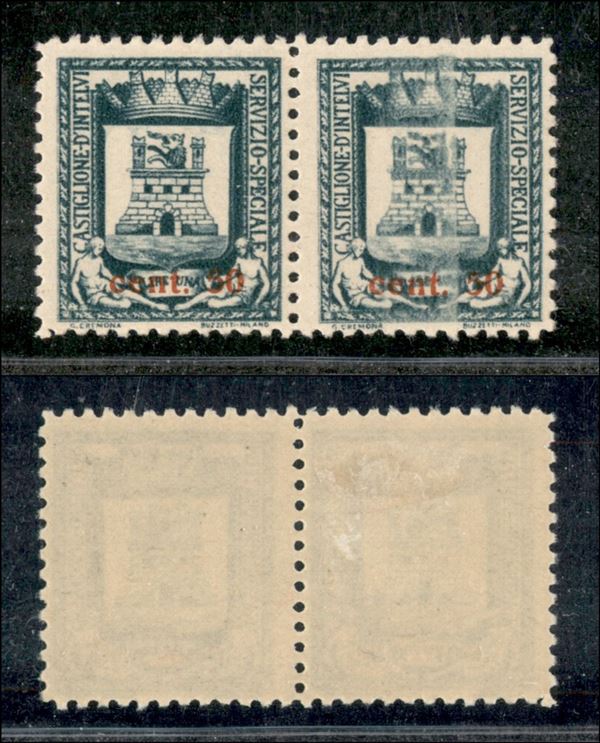 1945 – 50 cent su 1 lira Stemma (18) – coppia con stampa evanescente nel pezzo di destra - gomma integra e originale (sul pezzo di sinistra)