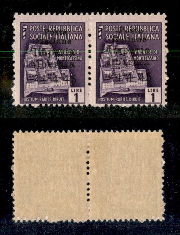 1945 - 1 lira (8 + 8dc) in coppia - senza trattino dopo 4 a destra - gomma integra