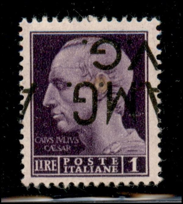 1945 - 1 lira (8dc) con soprastampa capovolta spostata a destra (A a cavallo) - gomma originale
