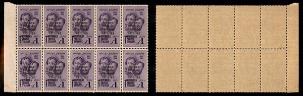 1945 - 1 lira Bandiera (14) - blocco orizzontale di 10 - quattro senza trattino tra 4 e 45 - gomma integra (690++)